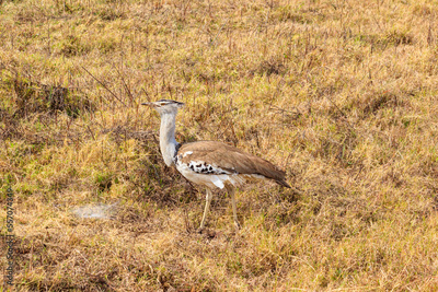 Kori bustard (Ardeotis kori) walking in dry savannah in Serengeti National Park, Tanzania