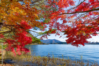 山梨県富士河口湖町 紅葉シーズンの河口湖