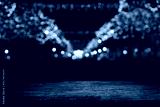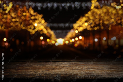 Night view of the city street and golden trees avenue with copy space for product placement.