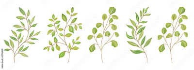 Watercolor Leaves Green, Branch painting leaf art