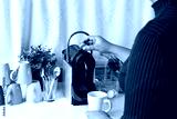 Closeup female hand insert espresso coffee capsule into automatic espresso machine to make fresh coffee at coffee bar at home or office in the morning. Technology and lifestyle concept.