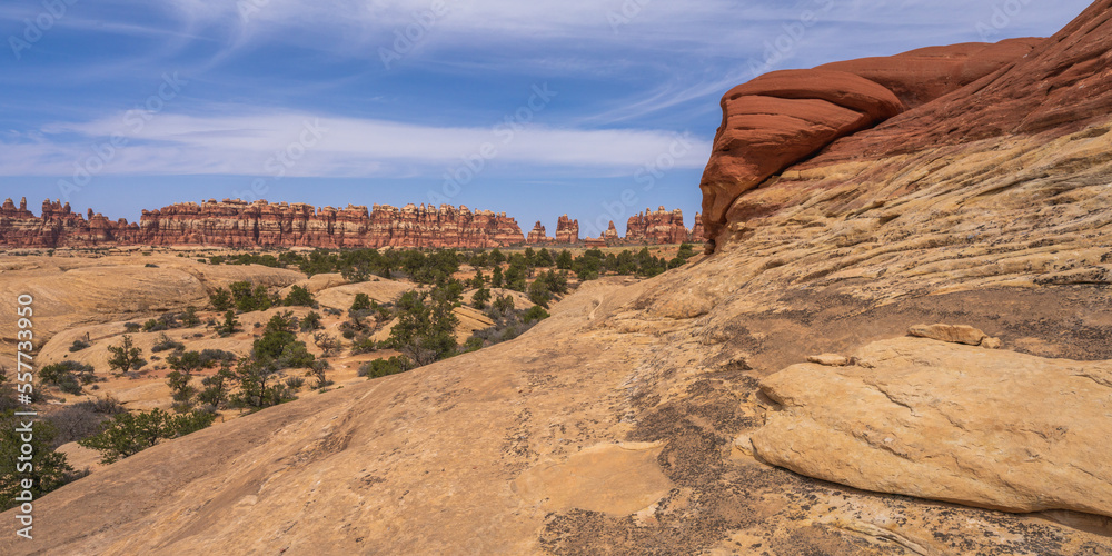 hiking the chesler park loop trail in the needles in canyonlands national park, usa