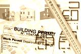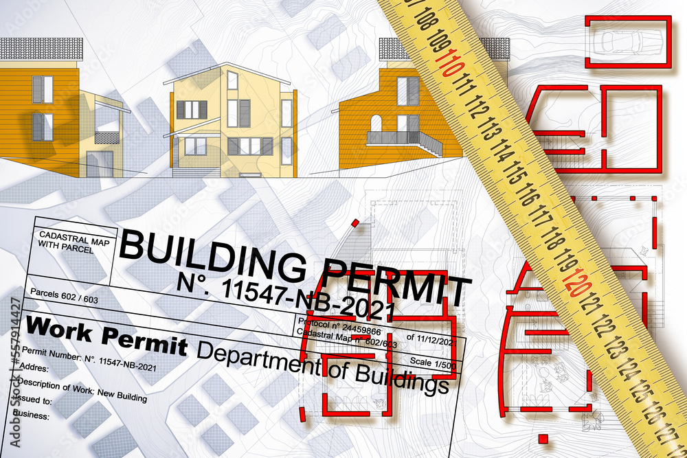 Buildings Permit concept with residential building project against an imaginary floor plans and elevations project of a new building