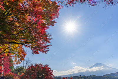 山梨県富士河口湖町 紅葉シーズンの河口湖
