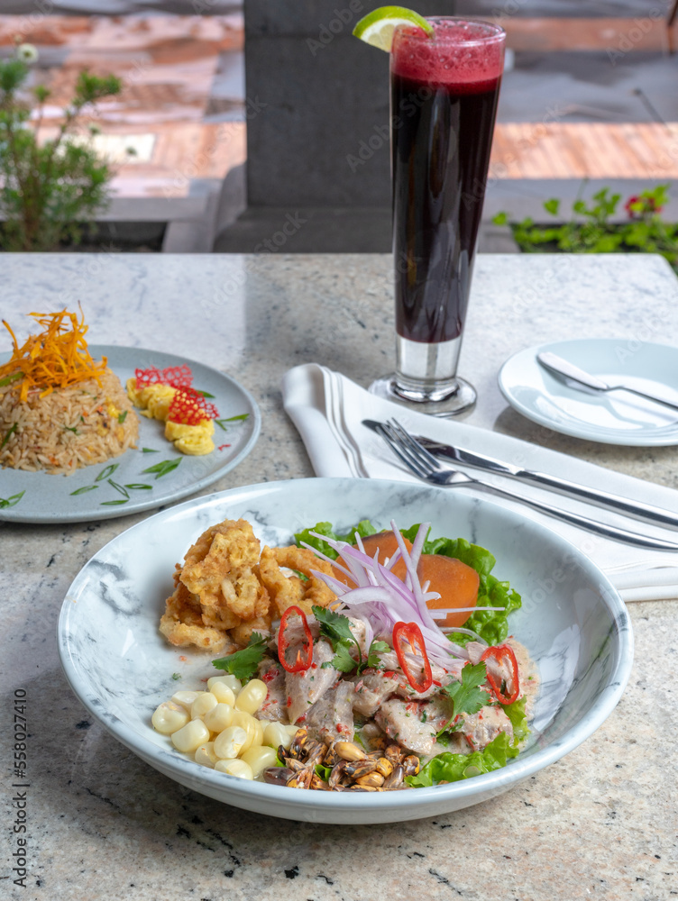 Fotografías de platos de ceviche carretillero la mesa de un restaurante en el norte del Perú