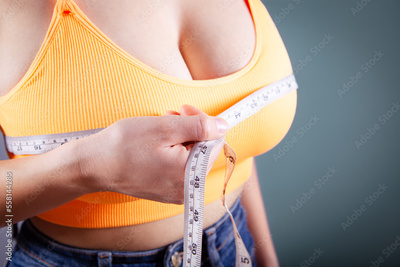 young girl measures breast girth on