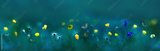 Yellow wild flowers and beautiful butterflies. Spring summer background. Banner format.