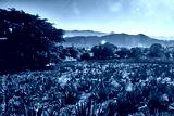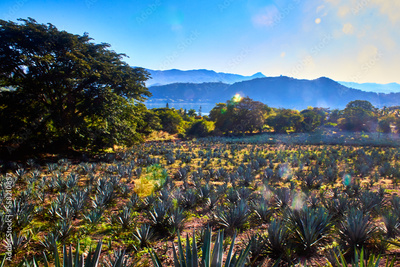 field of agave for tequila with mountains in the background at morning in santa maria del oro nayarit