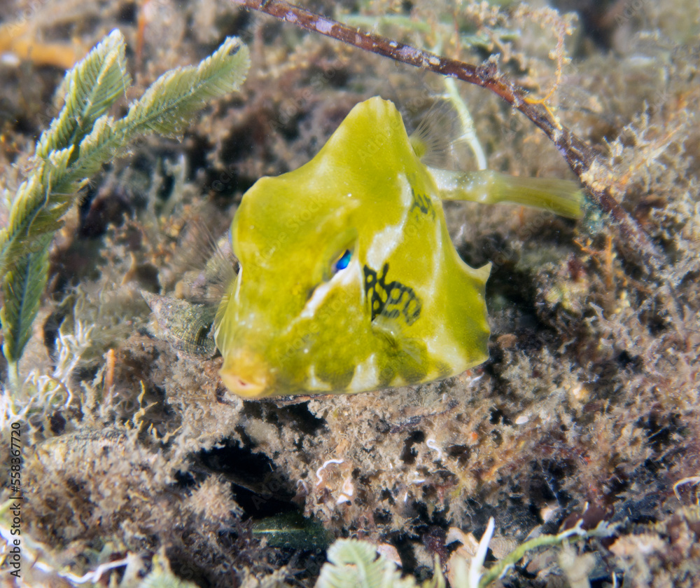 A juvenile Buffalo Trunkfish (Lactophrys trigonus) in Florida, USA