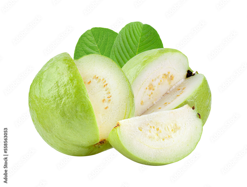 Guava fruit with leaf isolated on transparent png