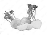 Fresh kohlrabi with green leaves on transparent png
