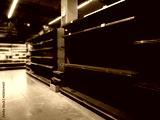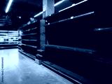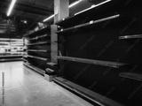 Supermarket with empty shelves of product goods Pandemic curfew Emergency situation