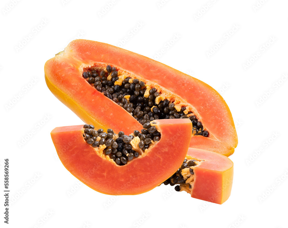 ripe papaya fruit with seeds isolated on transparent png