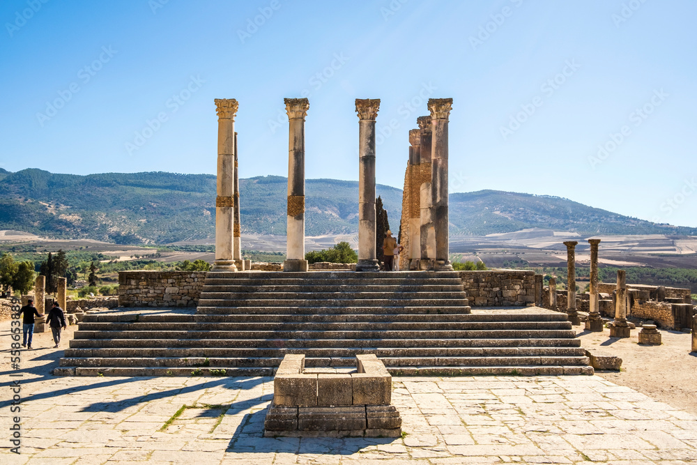 Well-preserved roman ruins in Volubilis, Fez Meknes area, Morocco, Northern Africa