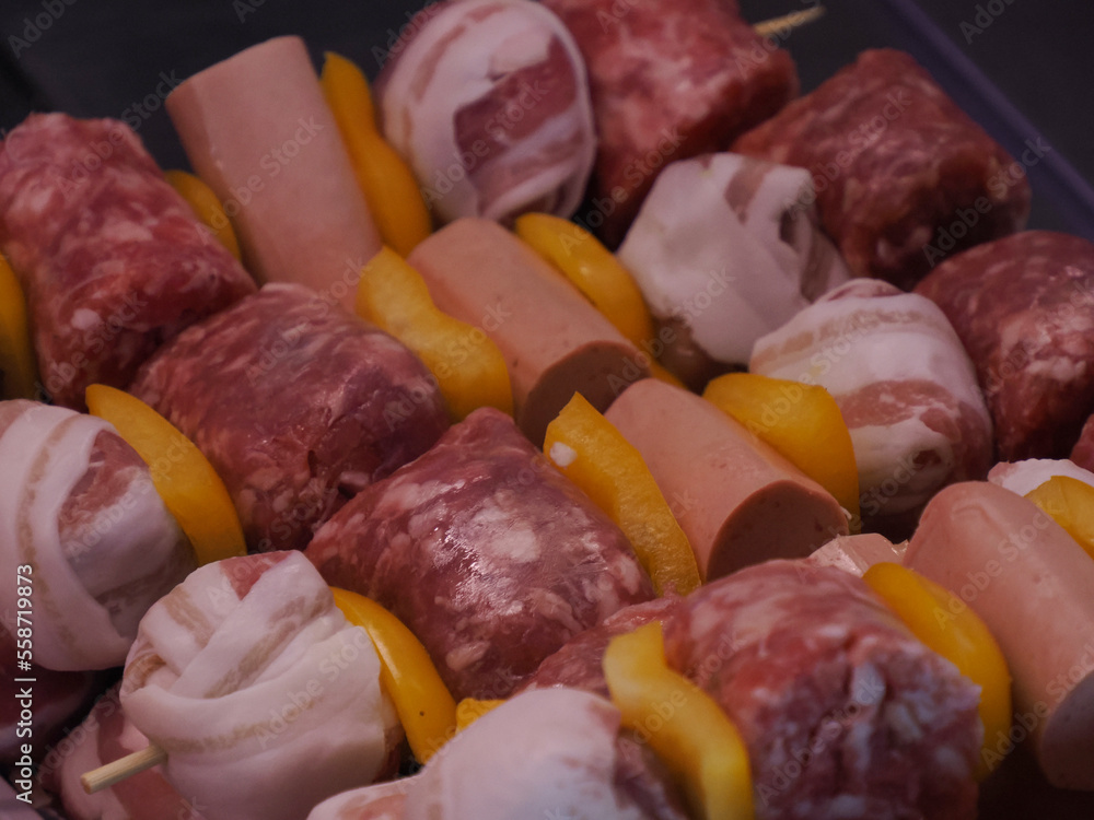 Italian different traditional sausages at the store.