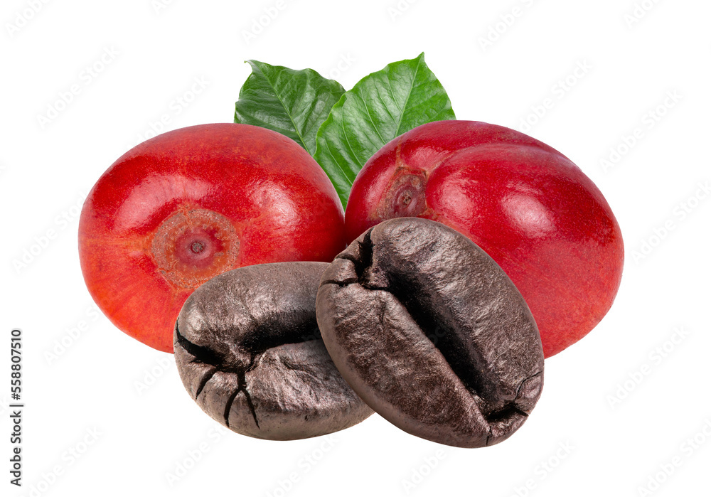 Roasted coffee beans isolated on transparent png