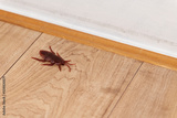 部屋のフローリングの床に偽物のゴキブリの害虫イメージ