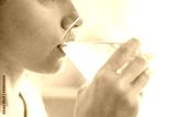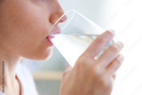 Woman drinking water at home