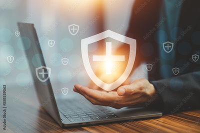 Insurance concept, People buy insurance online on computer at home for life insurance, home insurance,House insurance