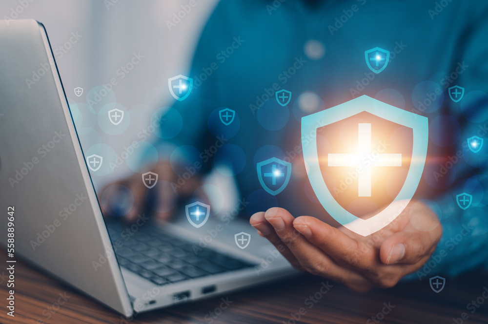 Insurance concept, People buy insurance online on computer at home for life insurance, home insurance,House insurance