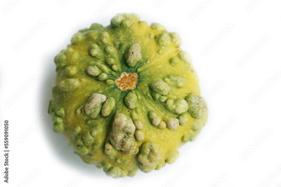 Ornamental green and yellow pumpkin or gourd isolated on white background