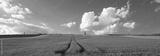 Beautiful summer landscape showing wheat fields with blue sky and white clouds on a sunny day