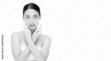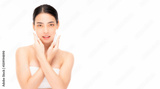 Beauty woman use Cotton Pads cleaning face with Beauty Cleansing treatment care for beauty skin Looking at camera isolated on white background Young Lady Enjoy Caring Facial Skincare Routine Concept