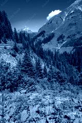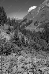 Street between Lech and Warth am Arlberg toward Biberkopf Mountain, Valley of Lechtal, State of Vorarlberg, Austria
