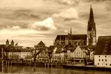 view from danube Old Town of Regensburg - Bavaria. UNESCO world heritage site in Germany