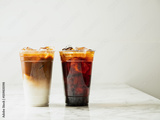 Ice americano and cafe latte on the table