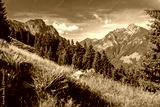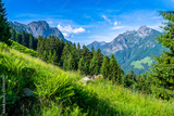 Path on the way to the Gurtisspitze in Frastanz, Bazorahang, looking toward the Drei Schwester Montains