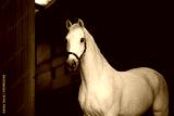 Beautiful gray horse on a black background