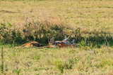 Lioness (Panthera leo) nursing her lion cubs in savannah in Serengeti national park, Tanzania