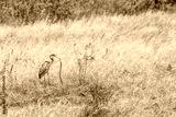 Black-headed heron (Ardea melanocephala) eating eastern green mamba (Dendroaspis angusticeps) snake in dry grass in Ngorongoro Crater National Park, Tanzania