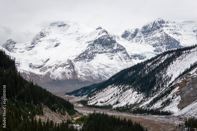 Mount Athabasca with Sunwapta River. Jasper national park, Canadian Rockies.