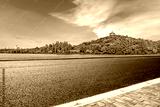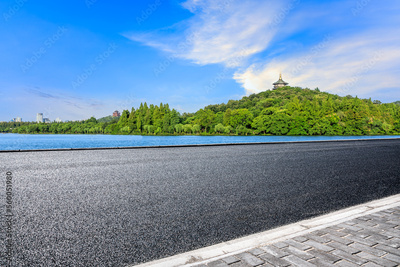 Asphalt road and mountain with lake natural scenery in Hangzhou, China.