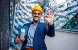 Construction supervision. Satisfied architect making inspection on building site. Construction concept