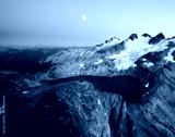Moon rise after sunset over Mount Daniel from near the summit of Dip Top Peak in the Alpine Lakes Wilderness