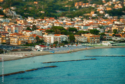 Beach and the town of Scauri in Italy.