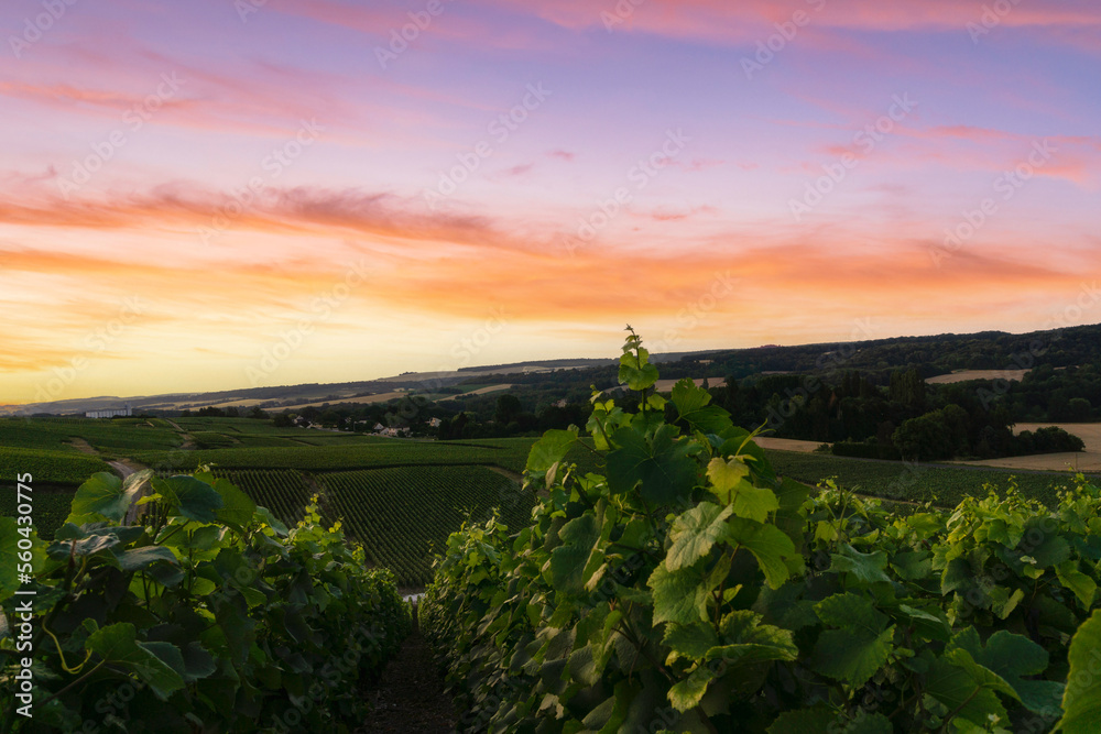 Row vine grape in champagne vineyards at montagne de reims, Reims, France