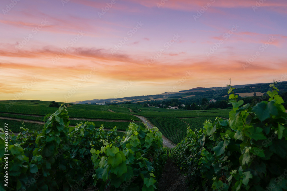 Row vine grape in champagne vineyards at montagne de reims, Reims, France
