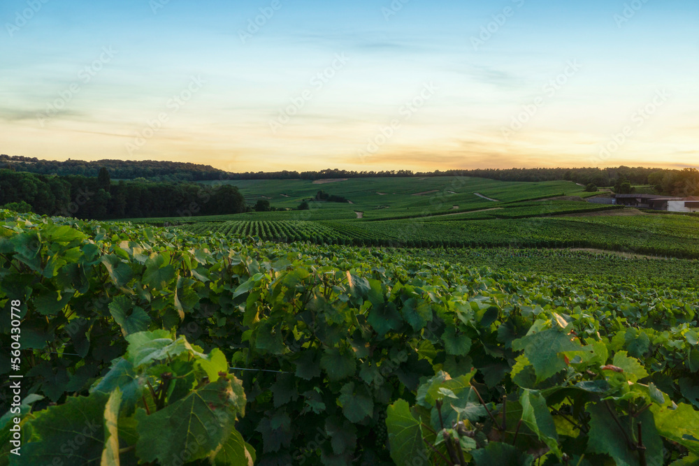 Row vine grape in champagne vineyards at montagne de reims, Reims, France