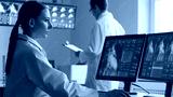 Professional medical doctors are maksing computer research in hospital office. Medicine, healthcare and cardiology concepts.