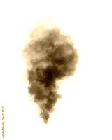 Abstract black puffs of smoke swirl overlay on transparent background pollution. Royalty high-quality free stock PNG image of abstract smoke overlays on white backgrounds. Black smoke swirls fragments