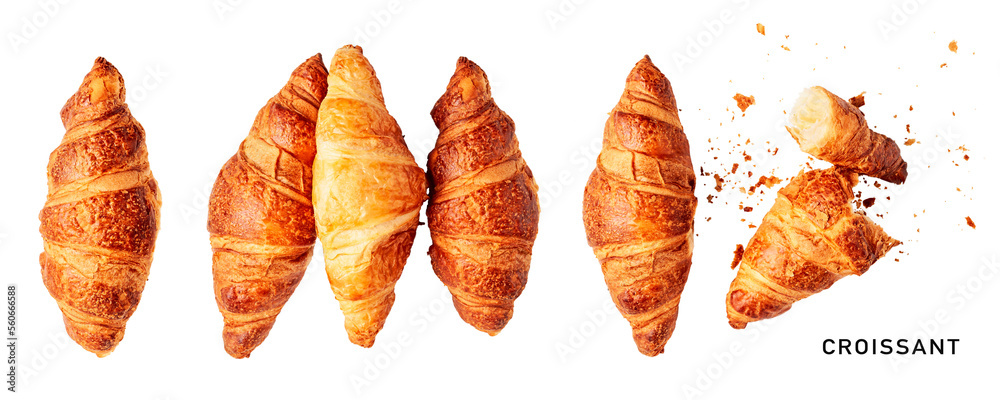 Fresh croissant set. PNG with transparent background. Flat lay. Without shadow.