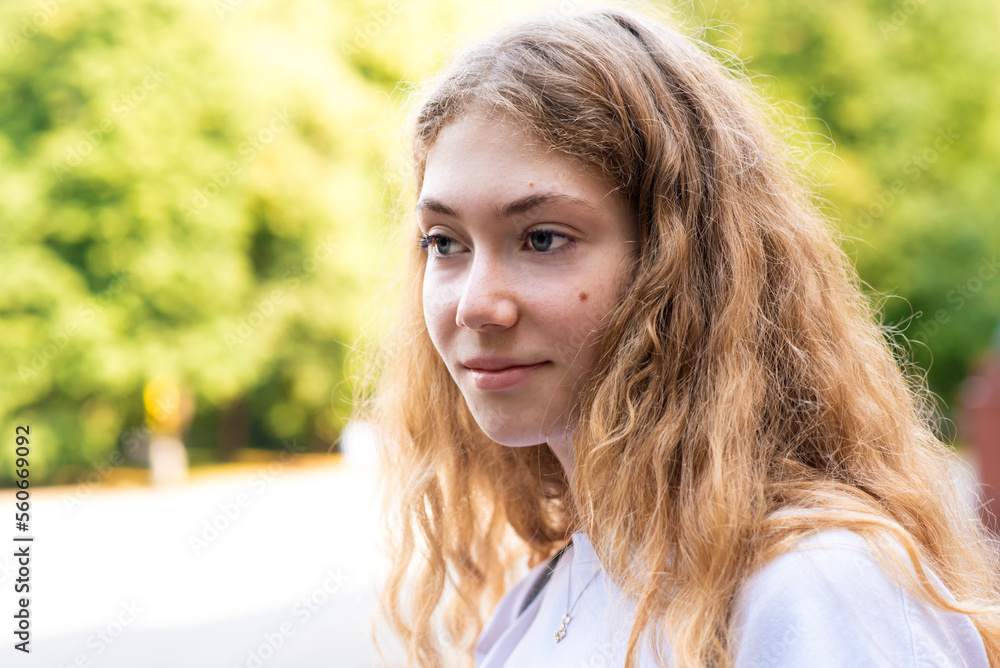 portrait of a beautiful teenager girl or young woman on a sunny day in the park