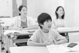 塾で勉強する生徒・児童・小学生(アジア人・日本人・中国人)
