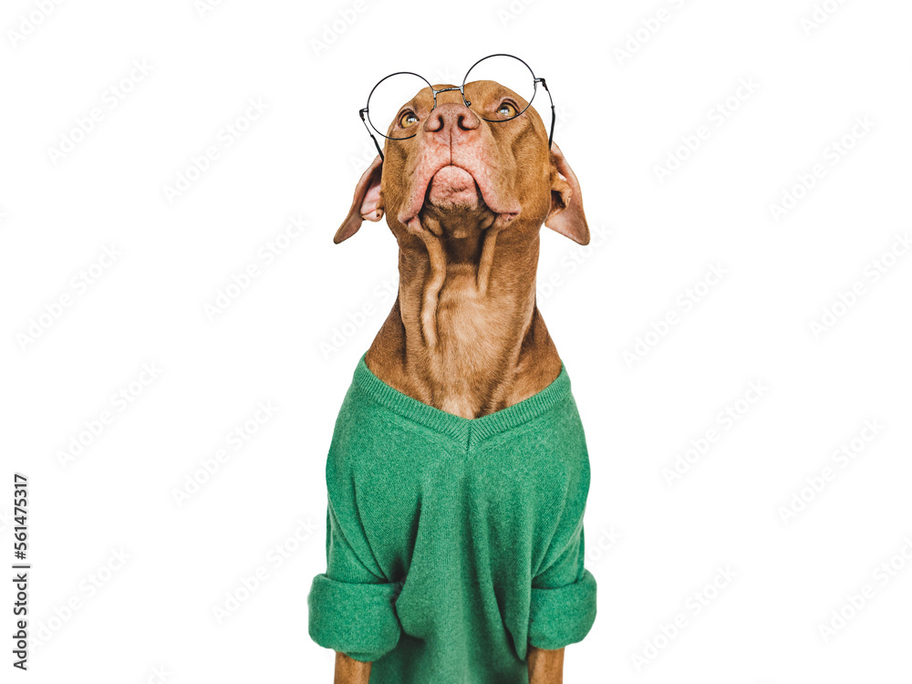 Lovable, pretty brown puppy. Isolated background. Closeup, indoors. Day light, studio shot. Concept of care, education and raising pet