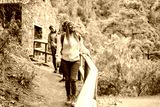 Multiracial women having fun exploring nature on trekking day in mountain forest - Travel and spring concept - Focus on senior african female face