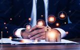 Businessman Digital chart stock market on coins stack for investment or trading concept